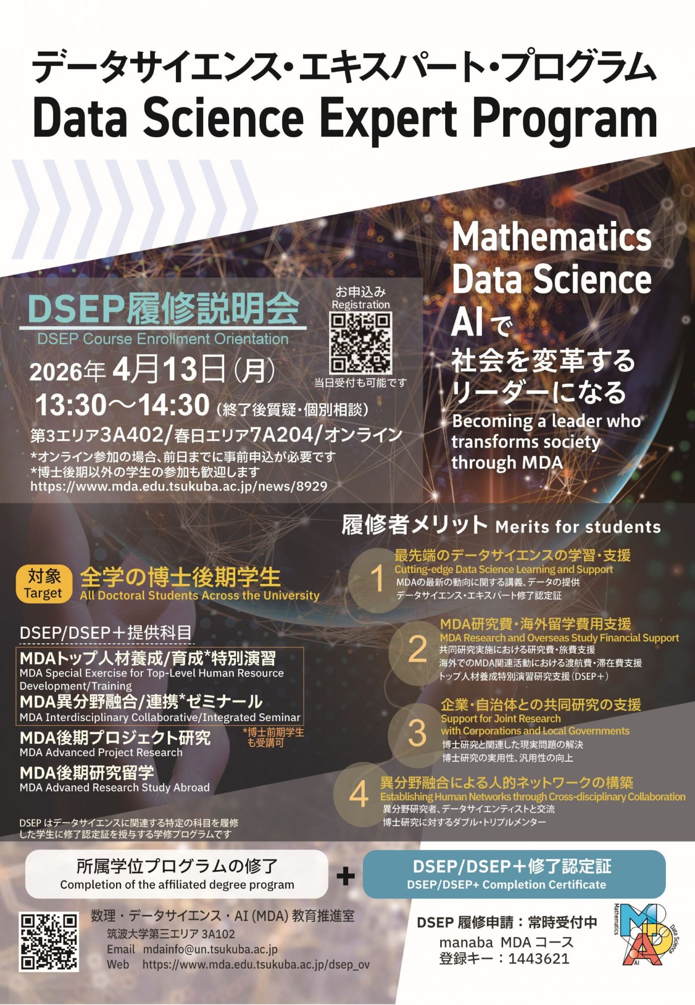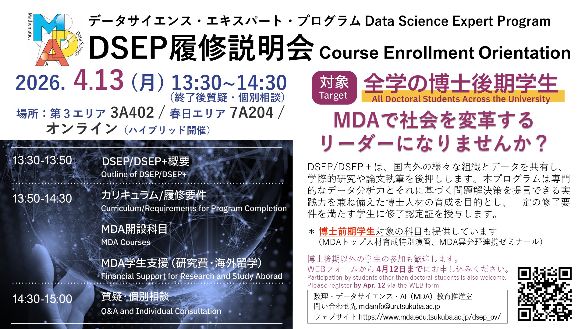 データサイエンス・エキスパート・プログラム(DSEP)履修説明会を開催します 4/13 (月) 13:30- / Data Science Expert Program (DSEP) Course Enrollment Orientation: 4/13 (Mon) 13:30-