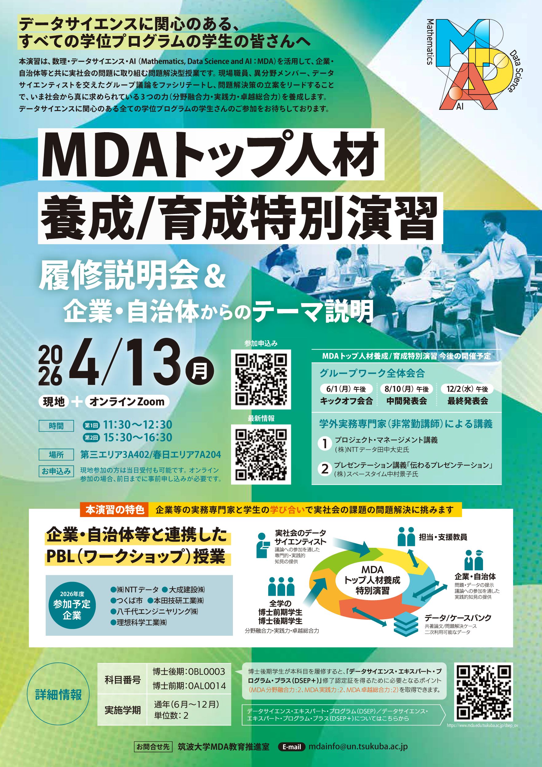 MDAトップ人材養成/育成特別演習の履修説明会を開催します。